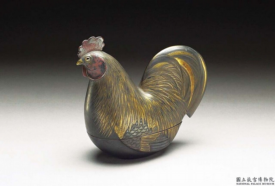 《蒔繪公雞盒附象牙仙工船》│木竹漆│12.8×5.8×10.5公分│清(西元1644-1911年)│國立故宮博物院藏 圖∣國立故宮博物院opendata專區
