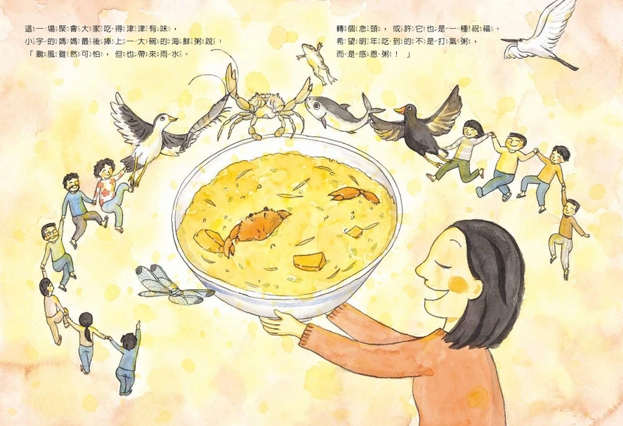 一場在地農漁朋友的聚餐,怎麼會變成一本繪本?沿海居民在極端氣候影響下,生活態度有哪些值得分享呢?我想藉著繪本,讓小朋友了解沿海農漁朋友的生活內涵,一場災難的來臨,就是一場考驗,有沒有可能也是另類的祝福?