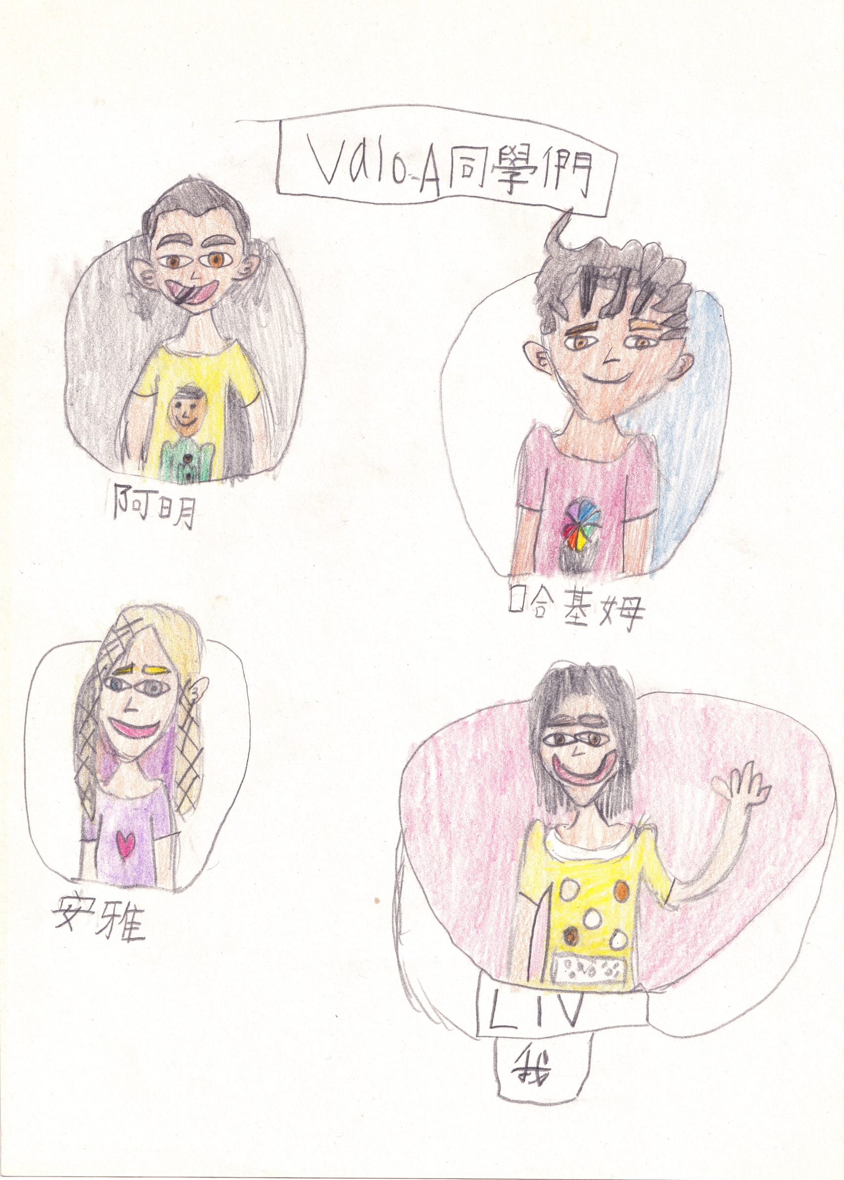 阿明是我在Valo-A班上最好的朋友,他很搞笑,他來自敘利亞,喜歡跳舞、足球。我們喜歡一起盪秋千和爬網子,下雨的時候挖水道,冬天的時候丟雪球。