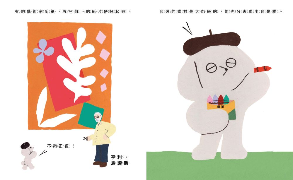 作者夏綠蒂・梅是一位定居於倫敦的插畫家,我已經關注她的作品很多年。過去幾年我們在東倫敦漫畫藝術節的攤位相鄰,因此我也和不少她的插畫家朋友合作過。夏綠蒂一直都非常熱衷且活躍於社交圈。我們曾經見幾次面都是為了討論合作出書的可能性,而當她提出將故事設定在一隻夢想成為藝術家的狗時,我知道這個想法一定可行!