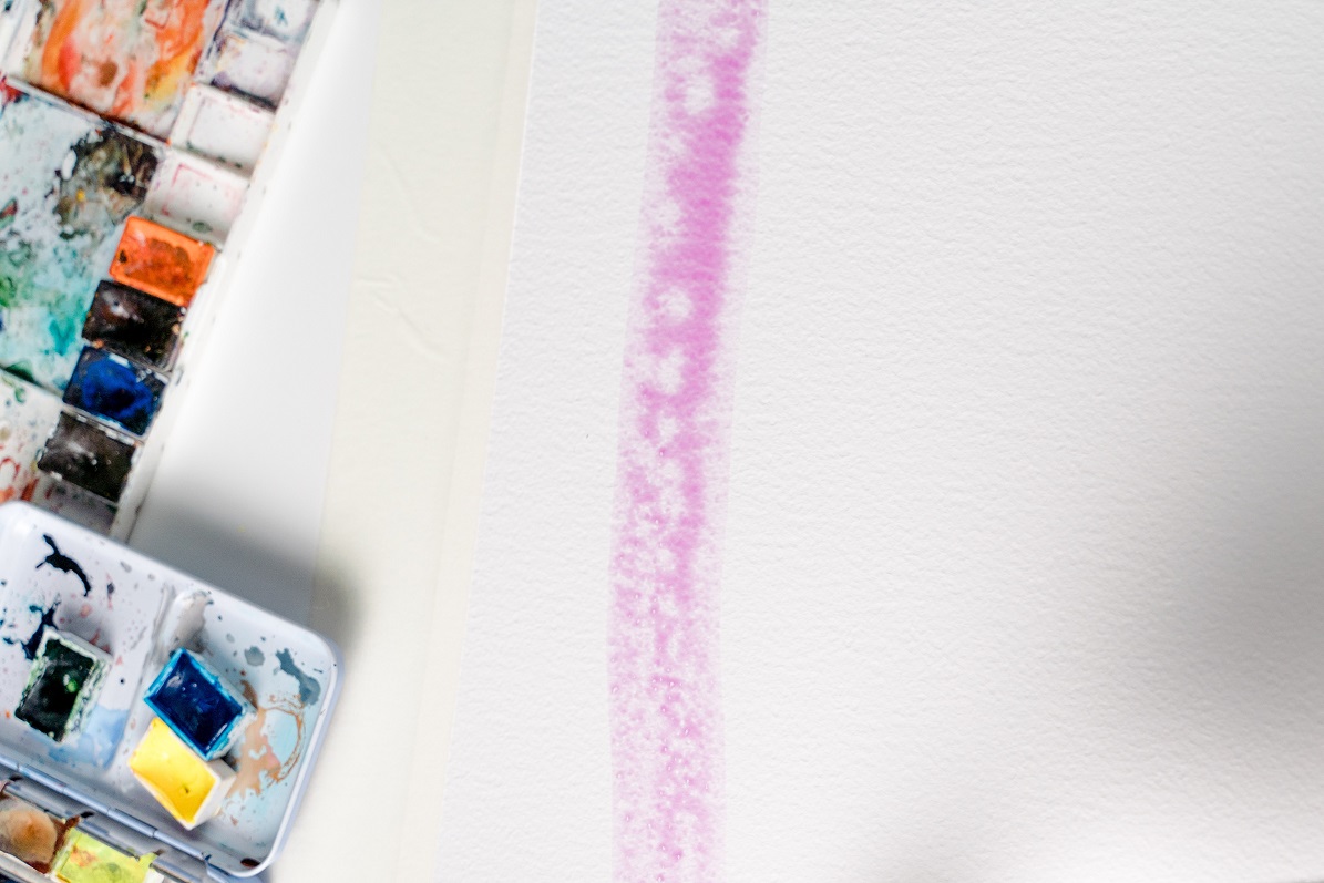 我把水彩筆沾上顏料,然後用沾著顏料的筆尖劃過紙上。