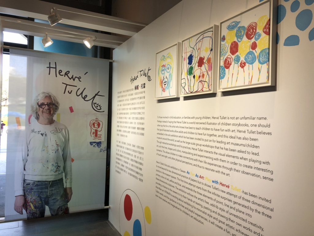 「赫威‧托雷玩藝術」展出法國兒童繪本作家暨藝術家赫威‧托雷(Hervé Tullet)首次嘗試跳脫紙本平面創作手法,從紅、黃、藍三原色,以及點、線、面三元素延展成立體雕塑作品。