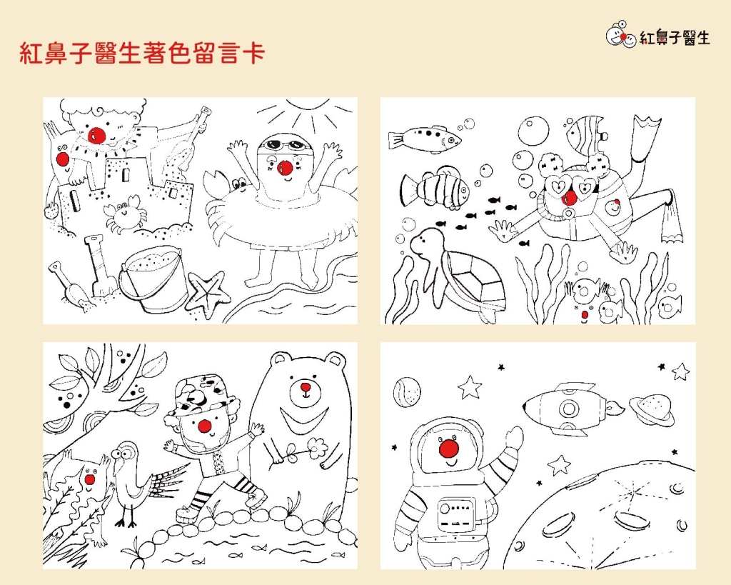 認捐人更可以在認捐頁面的「備註欄」留下對孩童們想說的話。紅鼻子醫生會將其印製成著色留言卡,放入禮盒送給孩子們,成為每個孩子獨一無二的紅鼻子禮盒。