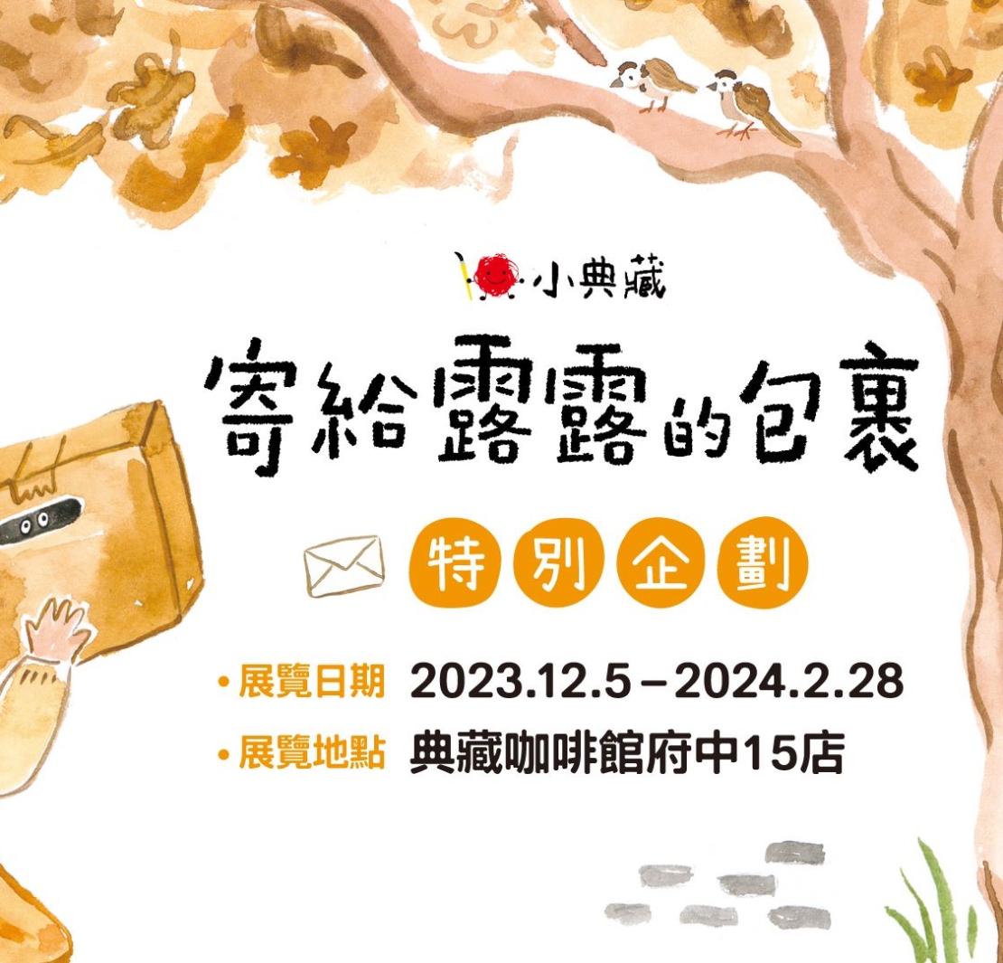 今年12月,小典藏與典藏咖啡館府中15店合作,將咖啡館打造成傳遞幸福的轉運站,來店裡尋找繪本《寄給露露的包裹》的圖畫元素。咖啡館點餐櫃台更打造收包裹的忙碌收發站,快來找找故事中的「大驚喜」在店裡哪個地方呢?