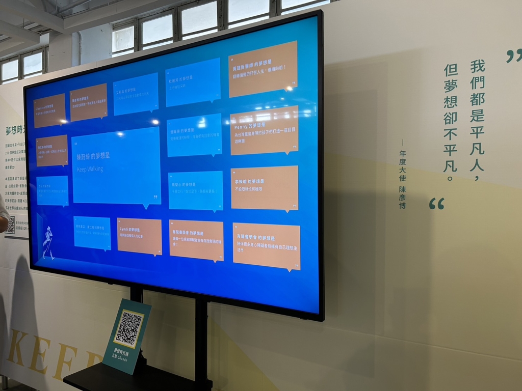 展覽也邀請民眾掃描 QR Code 寫下自己的夢想宣言,除了能在現場螢幕上看見大家投稿的多元夢想,互相啟發與打氣外,也能選擇永久保存自己的夢想,收藏自己的夢想初心,下一個 20 年再回頭檢視當初的夢想是否已經實現?