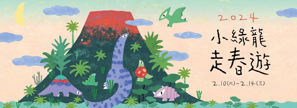藝術家徐至宏以「龍年祥獸」概念發想創作小綠龍家族,造型童趣、花色豐富的怪獸大舉遷徙入住歌劇院洞穴、戶外平原和「花花獸的綠色秘境」火山高原,帶來充滿想像的怪獸進行曲。 如果恐龍未曾滅絕,經歷世代環境污染,如今隱身與人類共存的牠們,會是如何的樣貌呢?藝術家徐至宏以反思環境變遷為創作靈感的小綠龍,將喚起你我的童心,也喚醒大家對環境的關心。