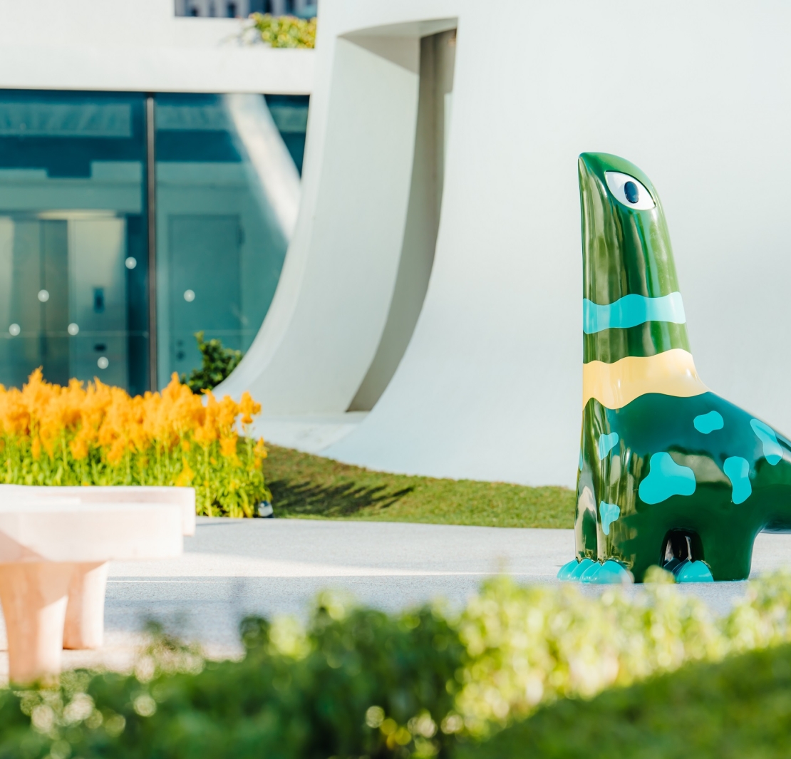 如果恐龍未曾滅絕,經歷世代環境污染,如今隱身與人類共存的牠們,會是如何的樣貌呢?藝術家徐至宏以反思環境變遷為創作靈感的小綠龍,將喚起你我的童心,也喚醒大家對環境的關心。