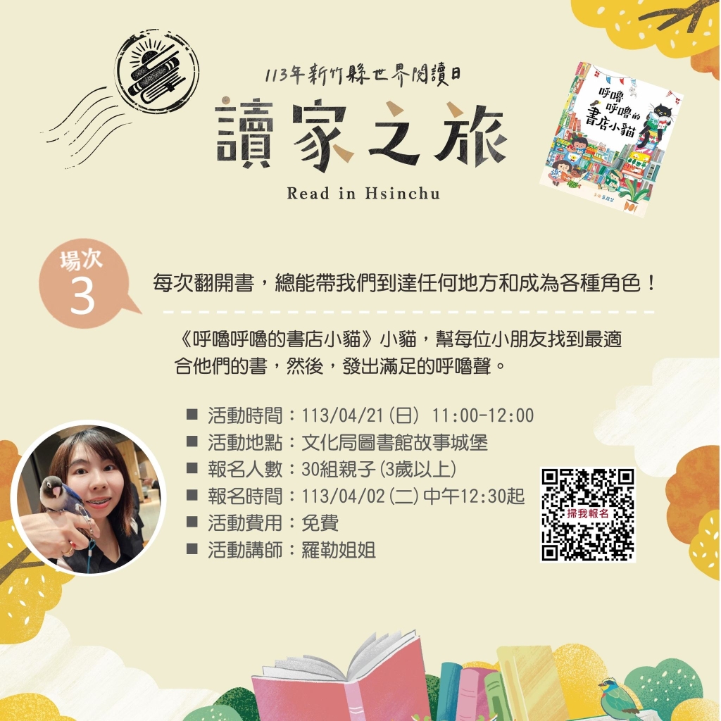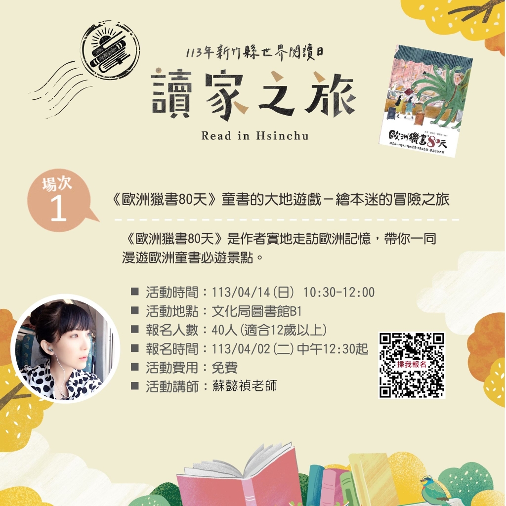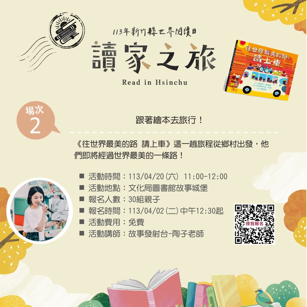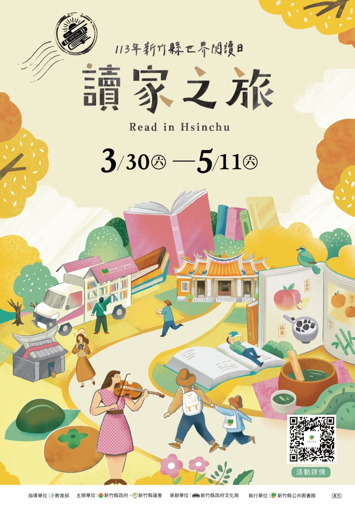 為響應4月23日「世界閱讀日」,新竹縣政府文化局攜手縣內圖書館及書店,以「讀家之旅」為主題,精心策劃一系列別開生面的活動,自3月30日起至5月11日期間,推出主題書展、精彩活動以及系列走讀,鼓勵大家走出戶外,在春日的陽光下享受閱讀的無窮樂趣,完成閱讀任務即可兌換限量設計小禮。