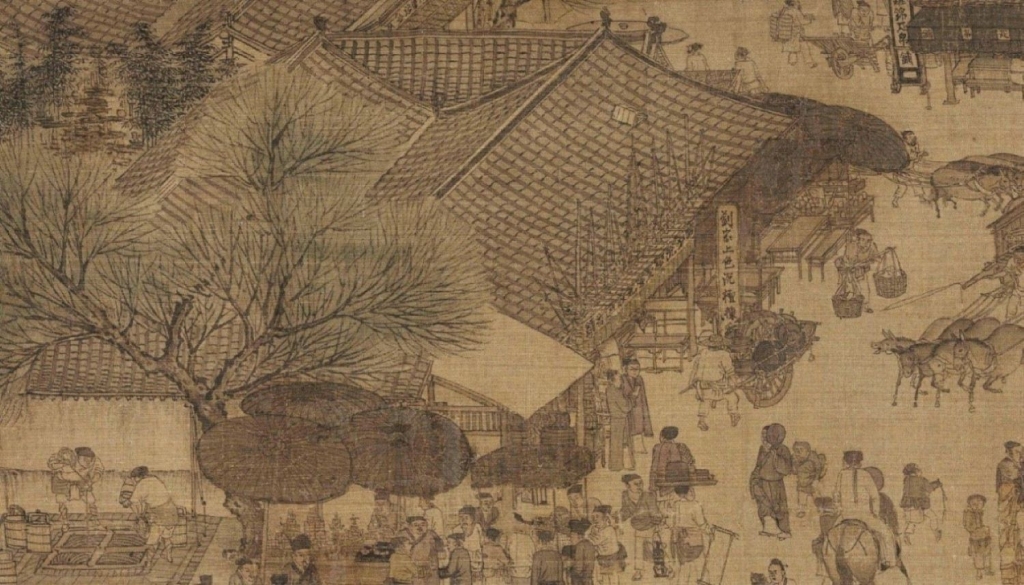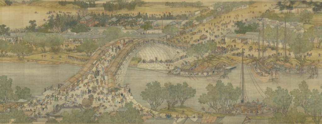 除了張擇端大名鼎鼎的第一個版本,後世臨仿者眾,據統計版本多達50多種,最著名是明代的仇英本和清代的清院本;三個版本各異其趣。宋本是士人視角,在乎人物的內心與個性,明本是世俗視角,以商人之眼捕捉世俗趣味,清本是帝王視角,畫出吉祥和王氣以迎合剛登基的乾隆皇帝。