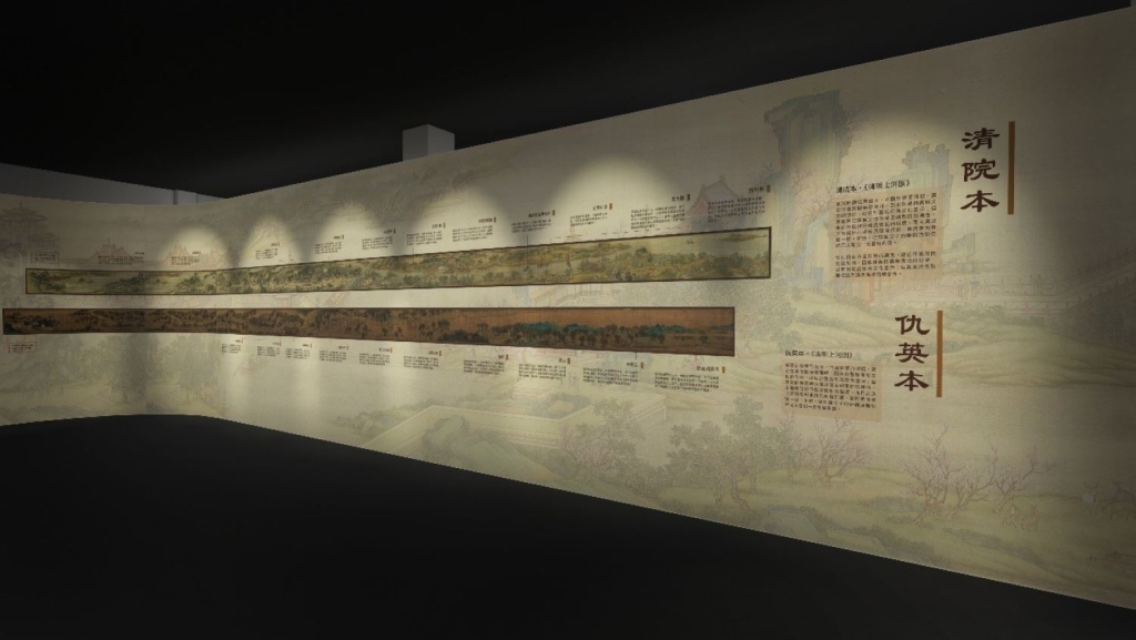 本次展覽融合了傳統藝術與現代科技,利用投影技術讓這幅傳世名作中的人、車、樹、水都動起來了,並分為白天與夜晚,每隔4分鐘日夜循環,畫作呈現得更加生動、逼真,觀眾仿佛穿越時空走進畫中,身臨其境地感受800年前世界之都的繁華景象。