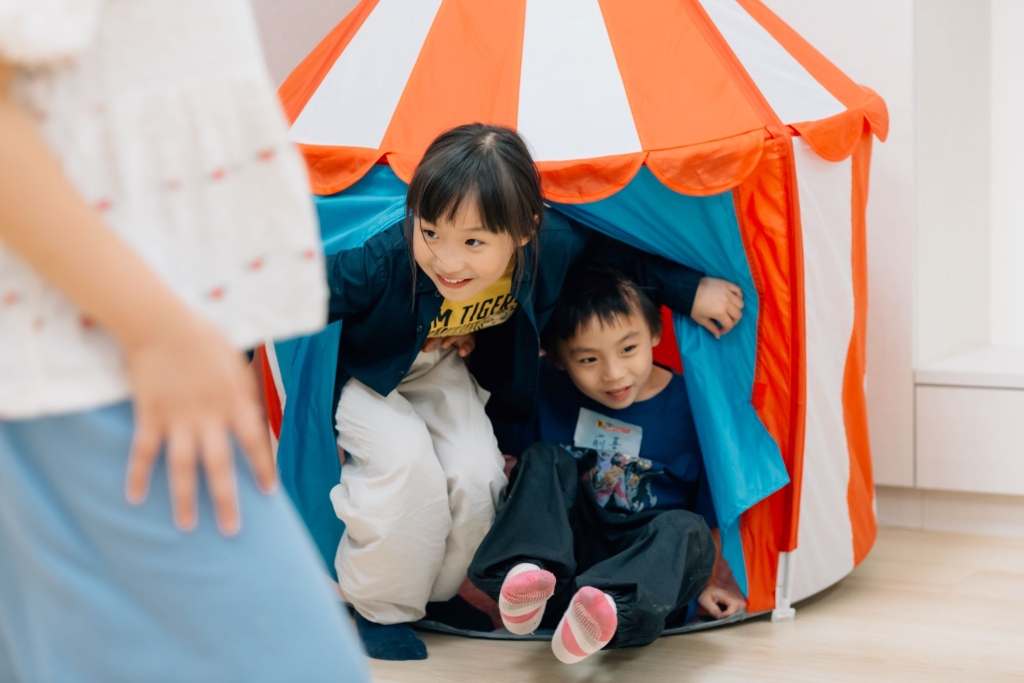 此外在環境建材到家具設備,每個細節都經過層層討論,以孩童的安全性為最大考量的設計,為防止孩童過敏,採用低甲醛板材、除甲醛乳膠漆施工,內部裝潢選用防焰的可回收綠色建材、同時設置防撞軟墊、舖設較有彈性的木地板,提升孩童在空間玩耍活動的安全性。空間內亦特別設置孩童個人物品區域、專屬飲水機等;硬體設備則增設投影機、音響等設備,搭配桌遊、繪本、物件道具等,透過多元的方式引導孩童投入活動、加強互動感。