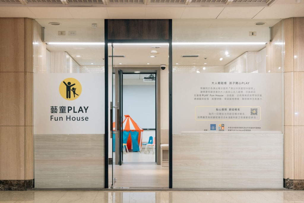 「演出中孩童陪伴服務」於每月一日開放次月國家戲劇院、國家音樂廳、實驗劇場、演奏廳等四廳所有演出節目場次預約,參與孩童年齡4-8歲,每場限額10名,所有持票觀眾皆可付費報名。「藝童PLAY Fun House」座落於國家音樂廳地下層,位於演奏廳入口旁,此區域為音樂廳主要觀眾出入口動線之一,十分方便照顧者的行動動線。