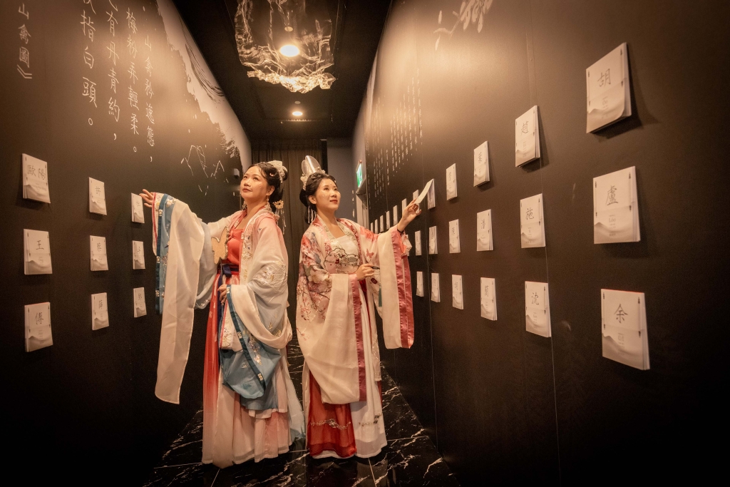 經歷畫中飛行旅程,來點宋朝小知識!宋朝使用文房四寶的美學有哪些嗎?宋人男女的流行穿搭時尚長怎樣呢?記得好好研讀現場尚意書法與穿搭文化小知識。