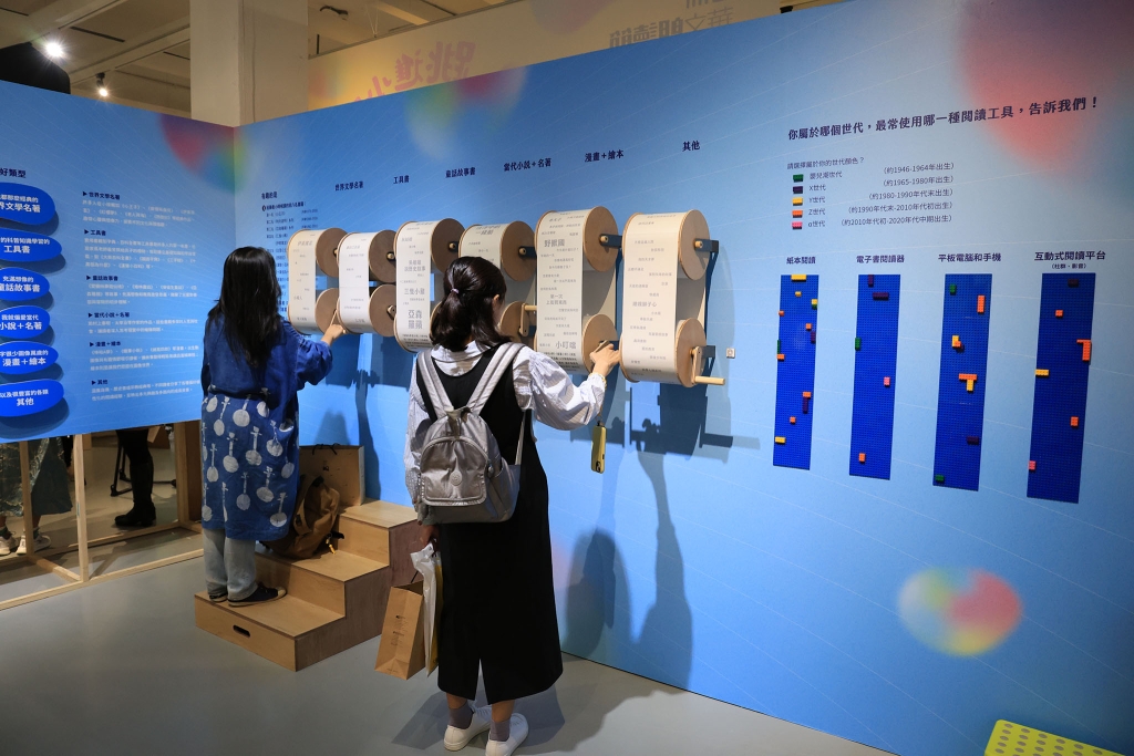 作家朱亞君、柚子醫生則在展區五:「我的第一本書和那時候」,分享了他們的有趣閱讀經驗,而招募三百多位民眾投件的小時候閱讀經驗,在這一區獲得很多回響,年紀最大和最年輕的差距六十多年時光,他們有不同的閱讀經驗。