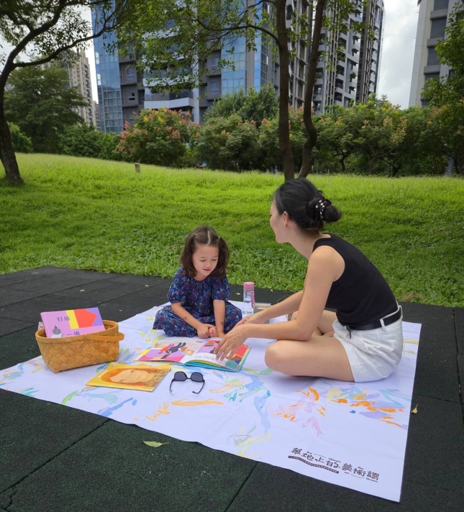 全天候開放的「藝術體驗」廣邀大眾參與,不管是大人還是小孩,都能找到最適合的課表!重頭戲包括「書本野餐」,可以線上預約及現場租借的野餐籃內,備有精彩刊物、藝術童書及由藝術家彭禹慈與民眾共創的野餐墊,當日臺中市立圖書館的行動書車也將巡迴到活動現場,邀請大小朋友在草地上用閱讀度過舒適的午後。