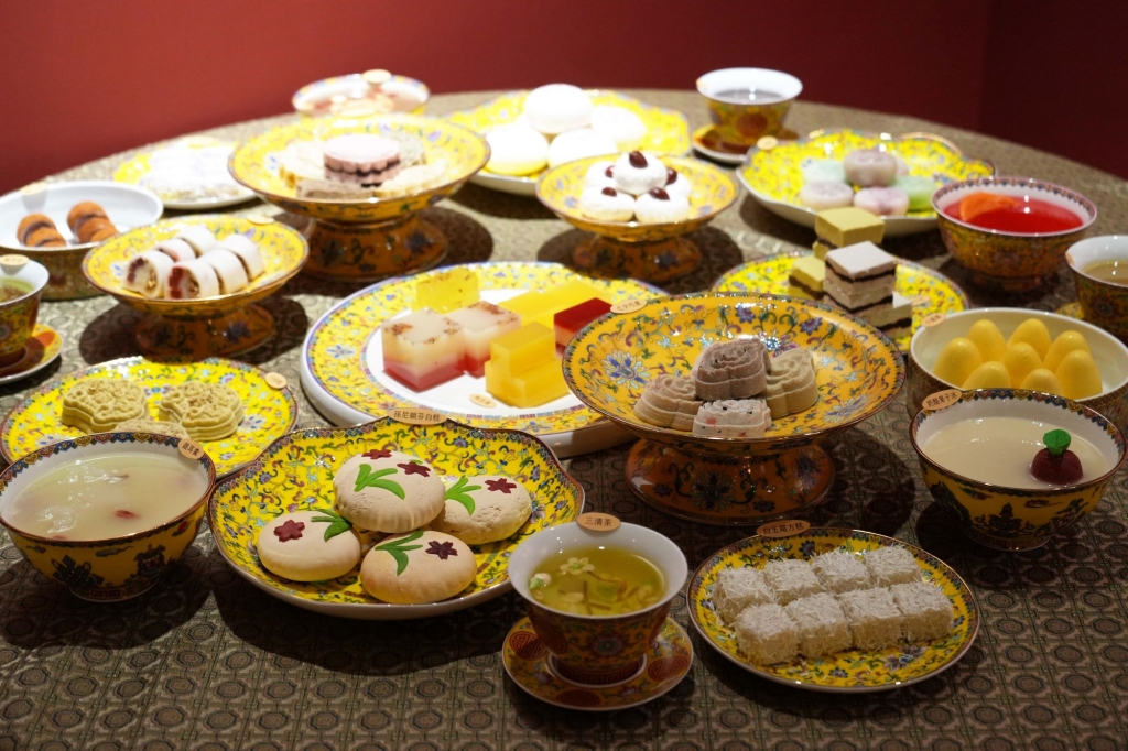 「茶與王」特展打造出氣勢磅礡的宮廷風場景,沉浸式展場不但能身歷其境傾聽乾隆皇帝等歷代君王親口道出他們與茶的愛恨情仇,甚至能走進御膳房,一窺「驢打滾」、「八珍糕」等宮廷茶點的秘密。