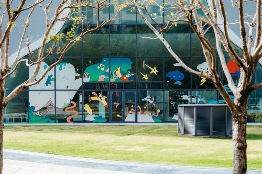 蛇象徵著蛻變與智慧,歌劇院與風格奇幻繽紛的藝術家吳騏合作主題藝術窗貼《蛻變之旅》,將蛇幻化成一條蜿蜒而神秘的道路,各種角色新奇有趣的相遇在旅途中發生,每一步都蘊藏著未知的可能性,帶來不同的體驗與風景。藝術窗貼從歌劇院忘我廳、一號門蔓延至四號門,結合節慶元素與建築特色呈現出豐富的綺想世界,邀請大家跟著蜿蜒的蛇,走進充滿驚喜的神祕國度。