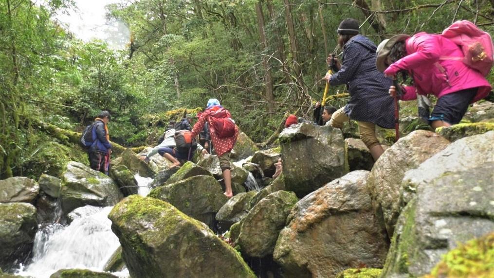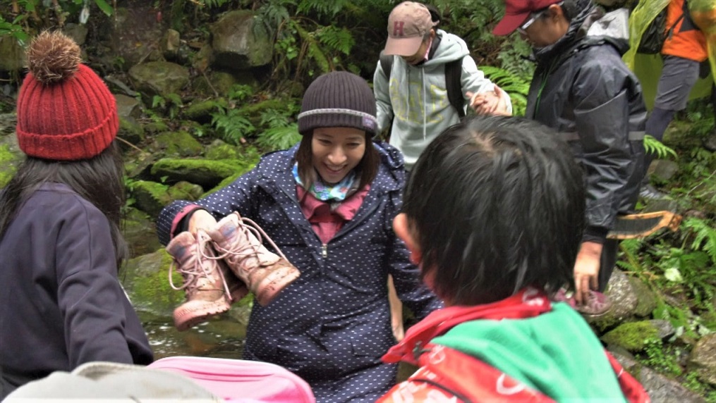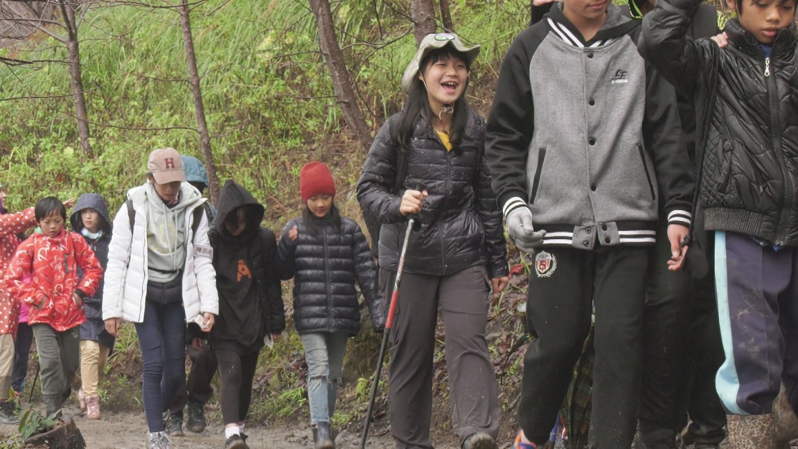 接下來的溯溪路段,他們必須手腳並用,穿越冰冷溪水和濕滑大石頭,每一步都危機四伏,就在大家舉步維艱的當下,一同前往的司馬庫斯的孩子主動排出一道人牆協助每個人,「當我被一雙雙小手牽住的那一刻,真的好暖心!」湘涵感動說道。