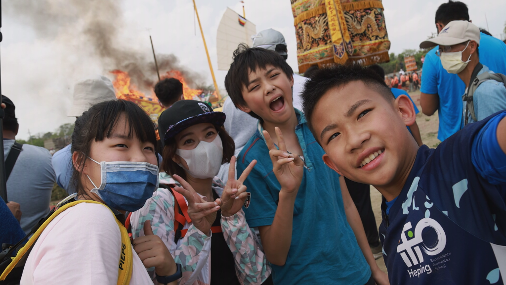 王船祭當天,湘涵和三個孩子以及現場上千位信眾同心合力拉王船,並在燒王船的送王儀式中,為這趟充滿挑戰的「零元旅行」畫下美好的句點。