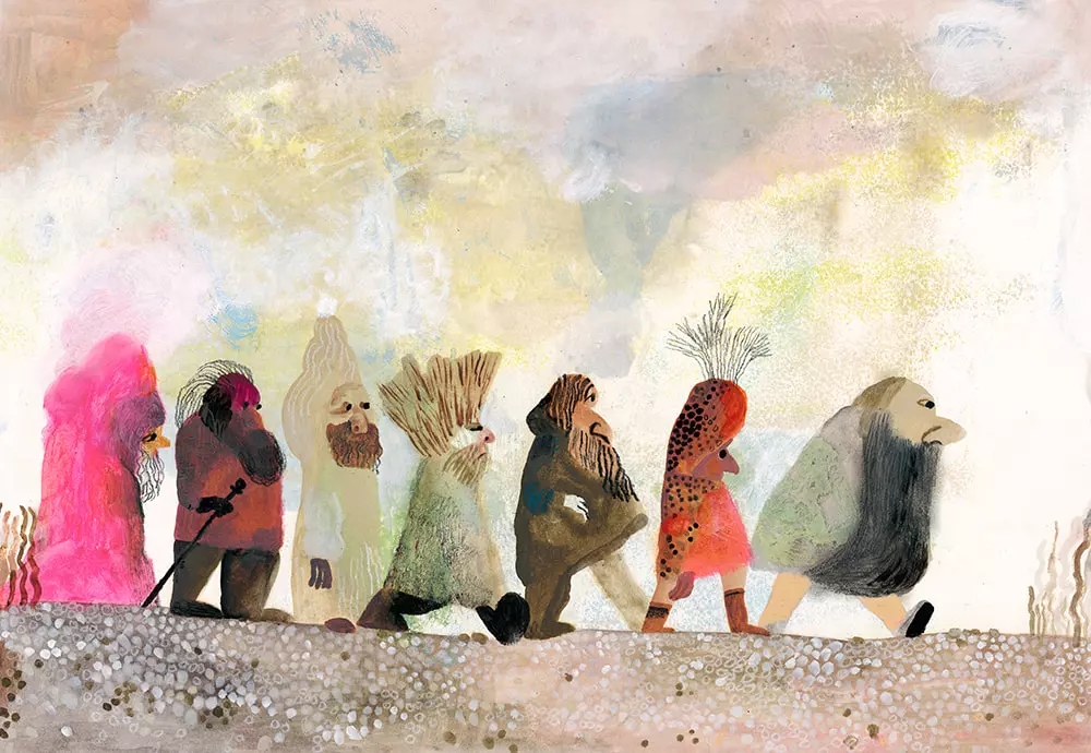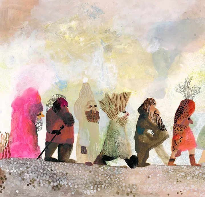 等仔細去了解文字後,再看一次這個被講過千百遍的白雪公主,不得不說,她沒有讓公主「美」,後母也沒有「美」,美的只有畫面本身。那些誇張的長髮、服飾……畫家只為了達成她對畫面張力美感的追求,不太追求人物動物的寫實,這就是阿雷馬娜。這就是你可能會納悶白雪公主怎麽可以畫的「不美」,後母為什麼可以如此「可怕」。