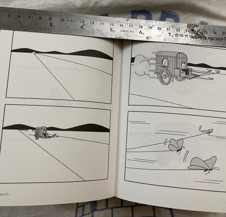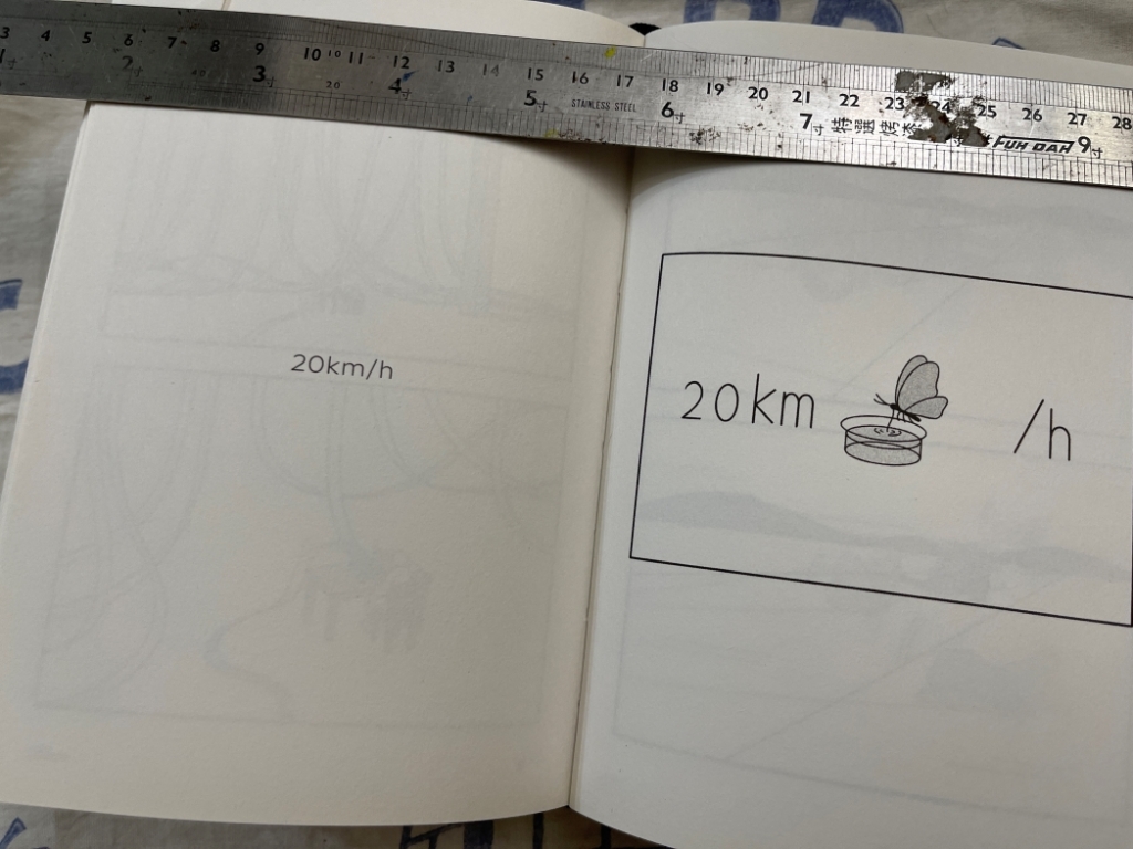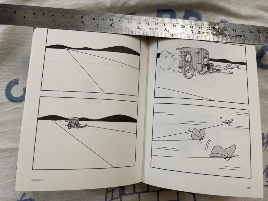 至於書名《20km/h》,又令人摸不著頭了,總而言之是一種「慢速」吧,不然會是快嗎?我對抽象的數字沒有概念,更難進入;可翻到裡頭真的有篇名為《20km/h》的短篇,赫然是三隻蝴蝶拉著一輪馬車,由「馬車」改版的「蝴蝶車」,卻也掀起一股塵煙,奔馳前去。
