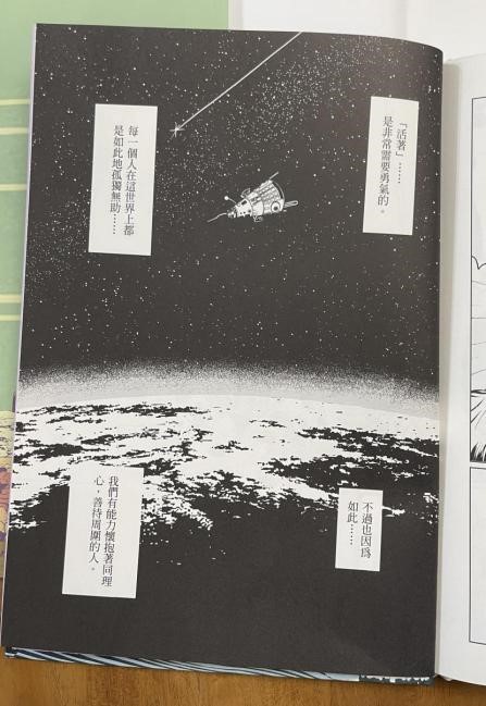 最後又有一頁畫了太空狗的畫面作為首尾呼應: