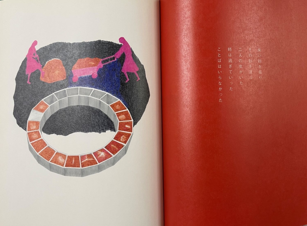 第一眼看到這封面,就有種好奇的欲望。入手後,細看兩位女孩的動作(果然動作不一定要全然寫實啊)、綠色的頭髮、粉色的連身裙…….全部的配色再看一次,都覺得非常的「順眼」(想想看要是是黑色的長髮,真的畫畫不用寫實啊)……另外,用「二」為主角的繪本,似乎天生有種優勢,除了複數的熱閙,在構圖上無論如何都有對稱,給人視覺或心理的安定感。