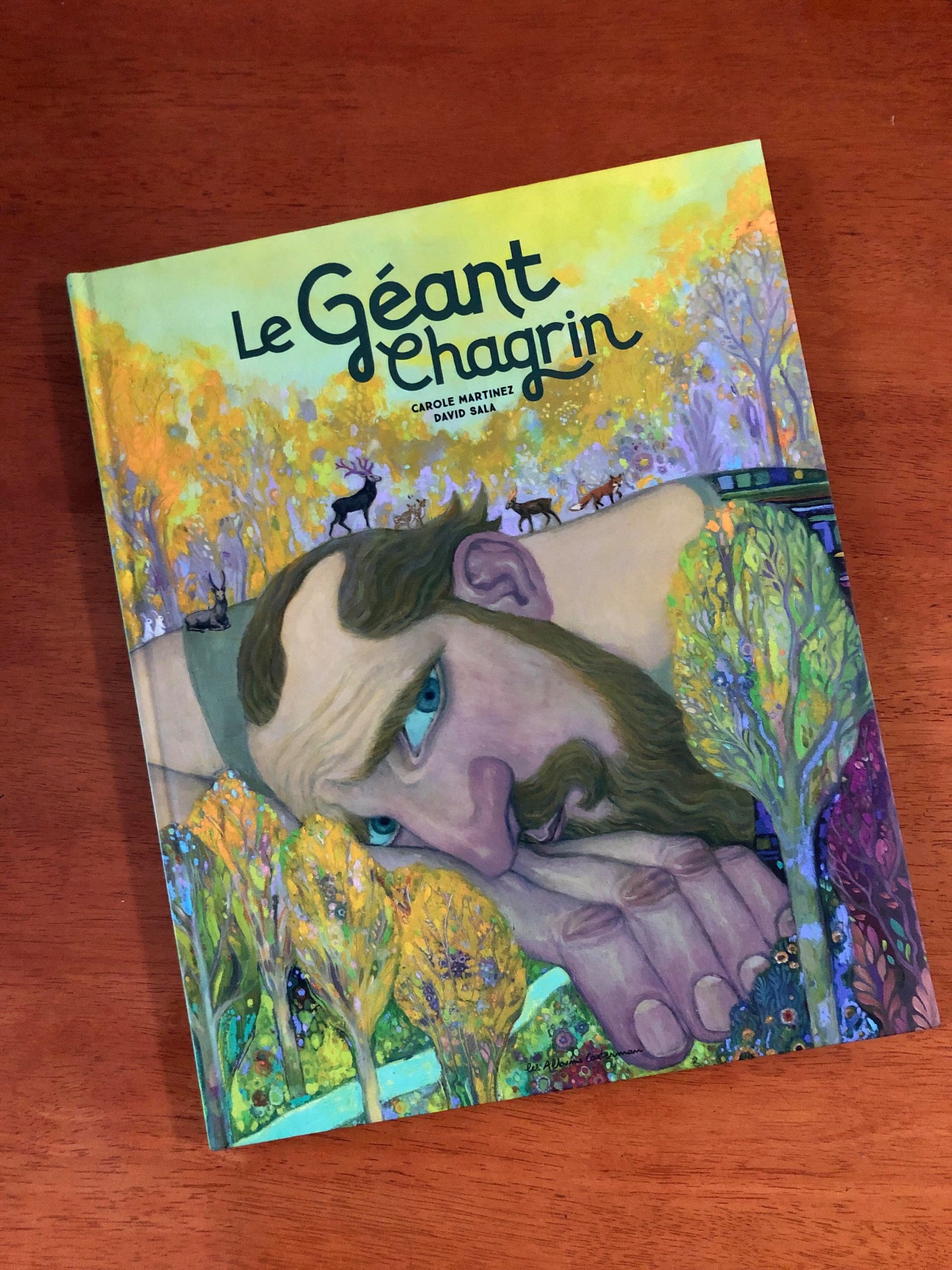 在此書附註翻譯文中提到作者CAROLE MARTINE試圖邀請讀者發現一個“完美”家庭的日常生活。書中的家庭住在“完美”房屋中,按照精確的標準生活著並從事“完美”的職業。此書插畫家DIVID SALA很喜歡擅長孔雀綠和繁複華麗的古斯塔夫・克林姆(GUSTAV KLIMT)風格。因此,在這本《Le Géant Chagrin》當中轉化成低調的華麗,透過越來越大且越來越有趣的插畫,傳達強烈色彩既鮮豔又輕盈的信息……(翻譯文來自童里繪本洋行)