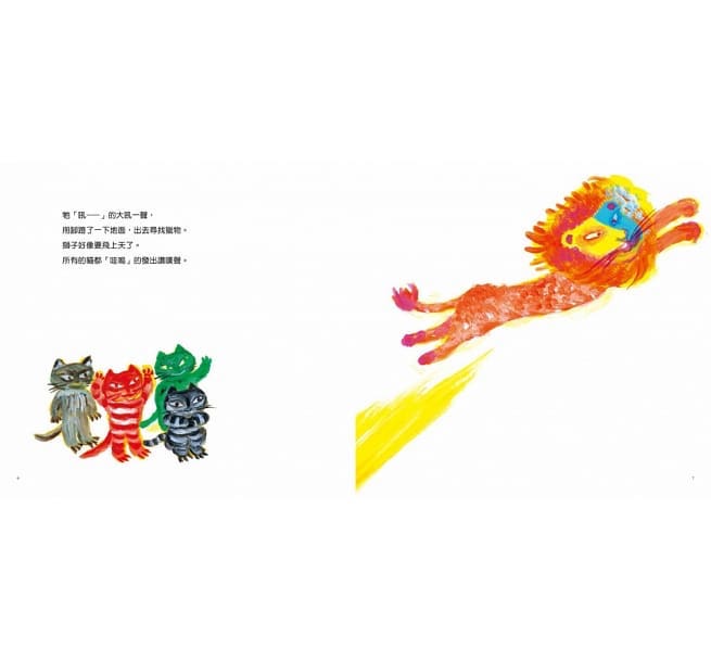 我常常會覺得,為一本一千字不到的繪本寫一篇一千字的文章,根本是愚蠢至極。不過我覺得佐野洋子的繪本是夠特別的,像這本《飛天獅子》,我老是覺得那隻獅子,就是一位決定離開孩子、揮別每天煮飯打掃日子的媽媽,雖然那些「幼崽」非常崇拜她,但是他們的表現,就像小孩子一樣「自私」,不知道體恤獅子的累,特別是牠坦承「我愛睡午覺」,牠們只當是玩笑。(不過請放心,書中明說了獅子不是貓的媽媽。)