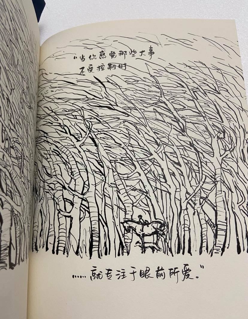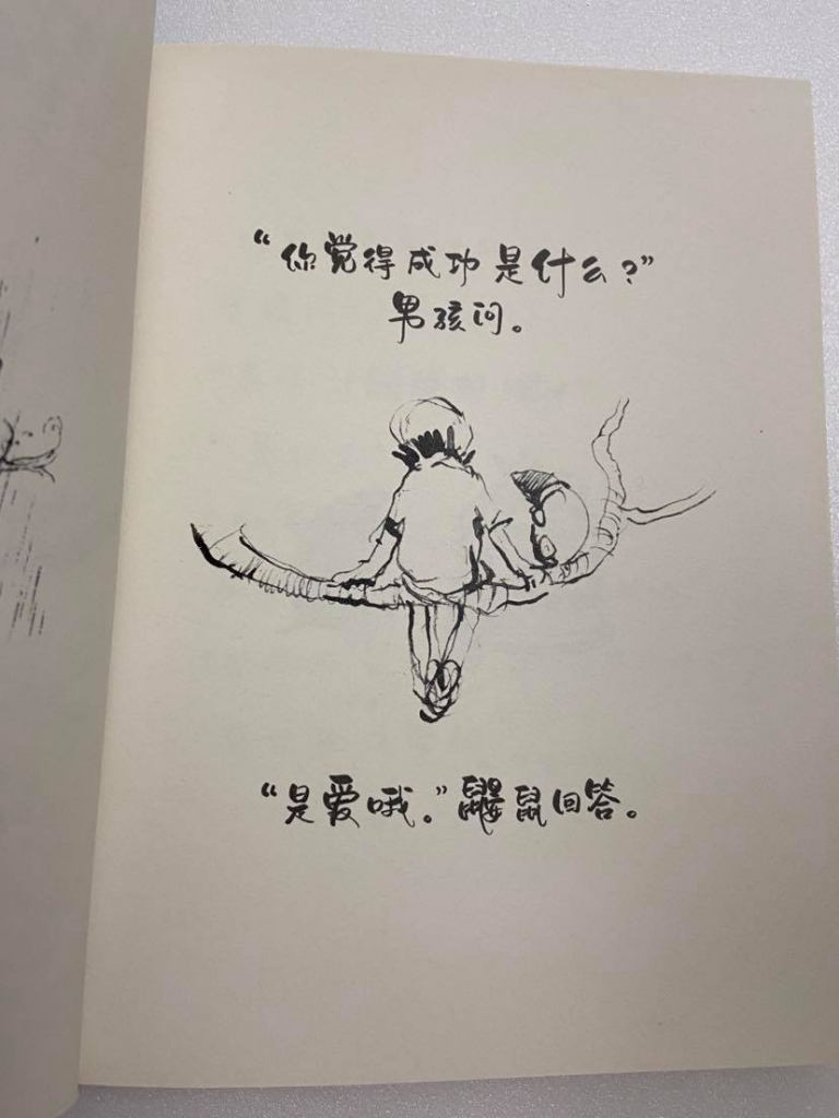 我感到納悶的是這年代還有大量喜歡、仰賴這種直接答案的讀者。從它登上各國暢銷榜看來;更有趣的觀點是討論人們為什麼需要「雞湯繪本」?不否認作者畫功優美,手寫字尤其是,兩者結合馬上成為「雞湯座右銘畫」,綱路上可見滿滿的quotes,好像人們瘋狂想擁有一張貼在牆上,就會擁有積極正向的人生。(中文版即便已經用上了心,手寫字還是和原文相去甚遠。)