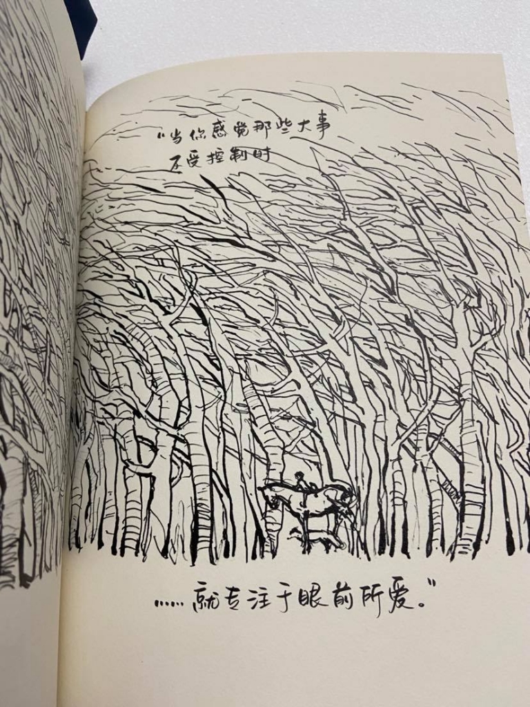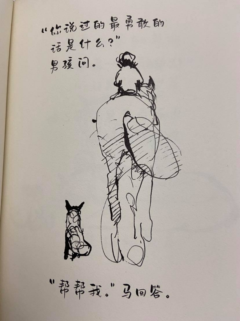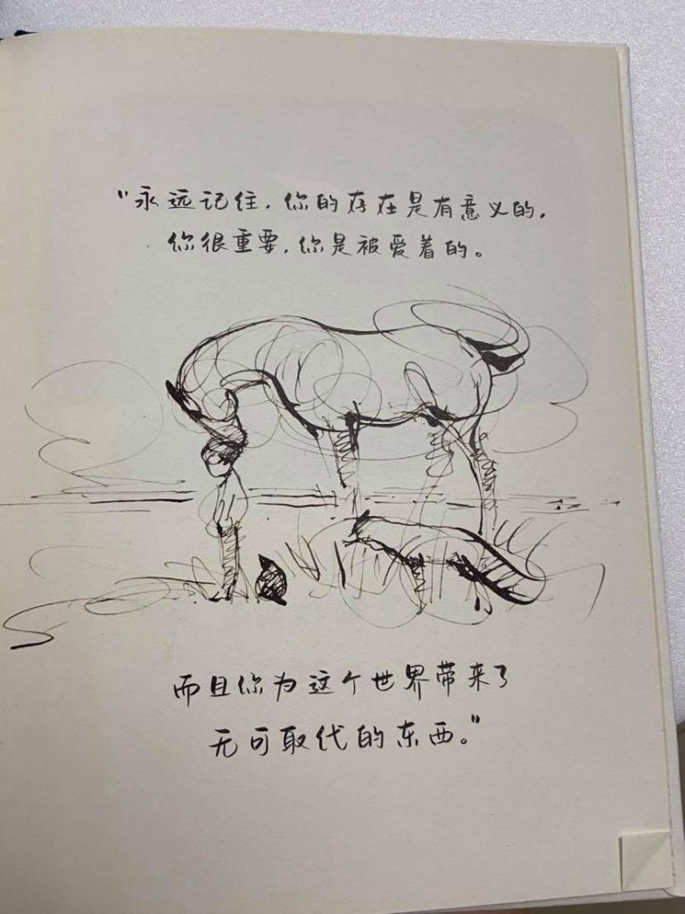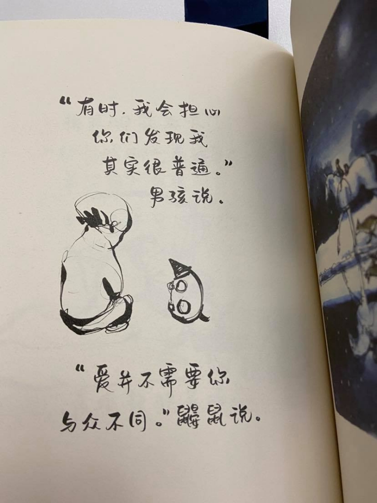 通常一本書有名的途徑是「獲獎」,世界各國各地都有很多聽過或沒聽過的獎項,確實獲獎是一本書突破浩瀚書海被世界各國看到的機會,也可能是因為行銷管道成功而被看到;而書介永遠可以把一本書說得很完美,這種速寫的鋼筆線條也和一般繪本很不一樣,就在這樣的市場機制下,又或許是中了促銷廣告的計,入手了簡中版旳《男孩、鼴鼠、狐狸和馬》(The Boy, the Mole, the Fox and the Horse)。