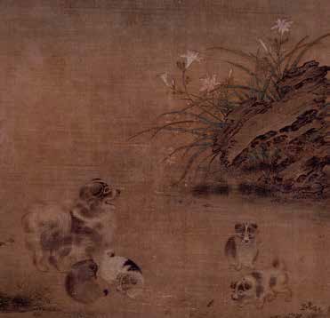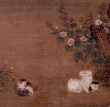傳毛益〈萱草遊狗圖.蜀葵遊貓圖〉