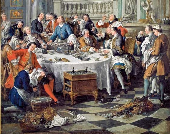讓.弗朗索瓦.德.特洛伊,《牡蠣午宴》局部 ,1735 年,油彩.畫布,126×180公分,法國尚蒂伊,孔德博物館。
