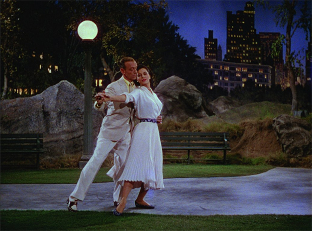 因此,在《花都舞影》(An American in Paris)中,當湯米歎著氣拾起莉絲的玫瑰時,金.凱利(Gene Kelly)和李絲麗.卡儂(Leslie Caron)可以持續做著眼前唯一適當的事,那就是好好地跳舞,在一個與所有的現實傾向皆脫節的繪畫空間中,展現那具有目的的姿態和手勢。從「現實」到「夢境」的過渡,其實是從虛構的混合元素到純粹表演的過渡。