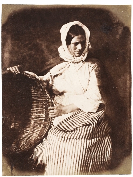 大衛.希爾與羅伯特.亞當森(David Octavius Hill and Robert Adamson), 《紐哈芬的賣魚婦》(Newhaven Fishwife ),1843-6, 紙質負片印製之銀鹽相紙沖印,19.5 × 14.7 公分,大都會博物館收藏。