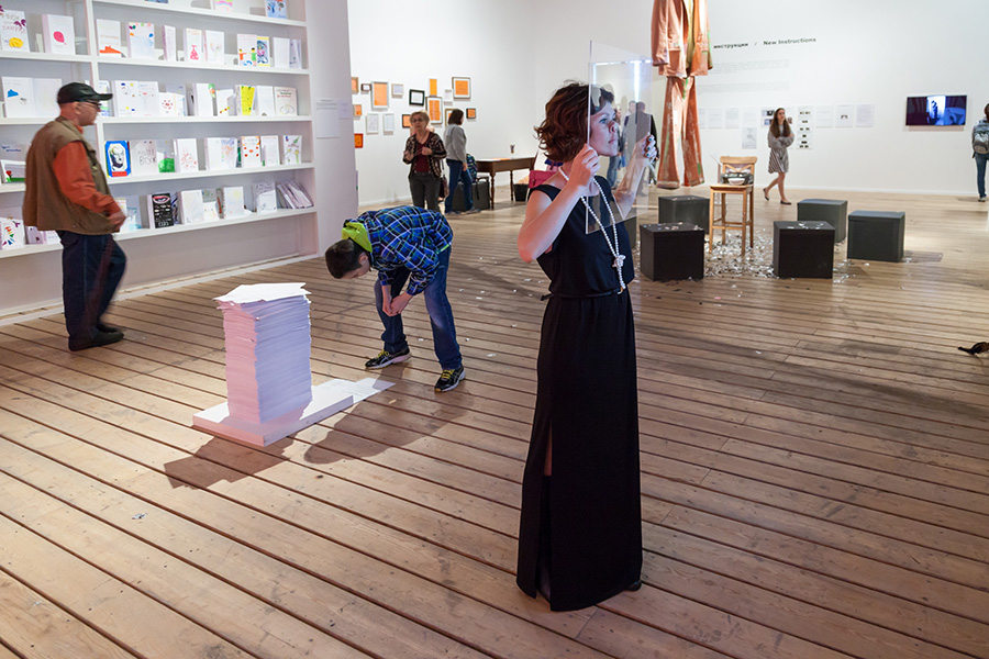 約翰.凱吉(John Cage)的《變化之樂》(Music of Changes )則是採取指令形式創作的音樂作品,能以各種不同的形式加以詮釋。在1960年代,小野洋子出版其劃時代的著作《葡萄柚》(Grapefruit ),提供與藝術和生活相關的指示。喬治.布列奇(George Brecht)建議將樂譜發表在新聞上,好方便眾人讀取,而艾莉森.諾爾斯(Alison Knowles)則創作了她稱之為「事件樂譜」(event scores)的作品。此外,塞斯.西格勞勃(Seth Siegelaub)於1969年舉辦的「1月秀」(January Exhibition),則是採用一本以全錄影印機(Xerox)複印出來的冊子作為展出形式,裡頭刊載包括道格拉斯.休伯勒(Douglas Huebler)的〈世界滿是物件,我無意再加添更多〉(the world is full of objects. I do not wish to add any more.)等在內的多篇藝術家聲明。我們想到,有許多文藝運動也採用了指令,例如超現實主義者自1920年代開始的「優美屍骸」(exquisite corpse)接龍遊戲,由一群人分別接力寫下一句話,最終成就一首詩。自動寫作也使用指令,如法蘭克.歐哈拉(Frank O’Hara)創作於1950與1960年代的〈待做事項〉(things-to-do)一詩。在1960年代間以蓋伊.德波(Guy Debord)為首的基進團體——情境主義者也曾製作充滿諧擬意味的「操作指令」(operational instructions)。