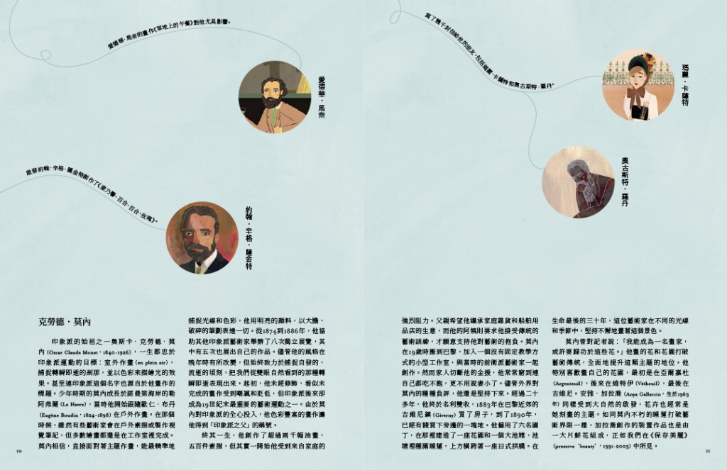 莎拉.帕普沃斯的原創插圖充滿活力,讓藝術家和他們的故事栩栩如生,將他們連結在一起,創造屬於他們的獨特世界。在藝術界有千千萬萬的連結已經發生或正在發生,本書談到的只是一小部分,而它們在過去幾個世紀裡為藝術的面貌帶來了各種挑戰與改變。我希望這些故事可以讓你帶著一種全新的視角與樂趣去觀看這些作品。藝術會讓你得到回報:你了解得越仔細,能看到的就越多。讀完這本書再去欣賞這些藝術家的作品,希望你能得到更多。
