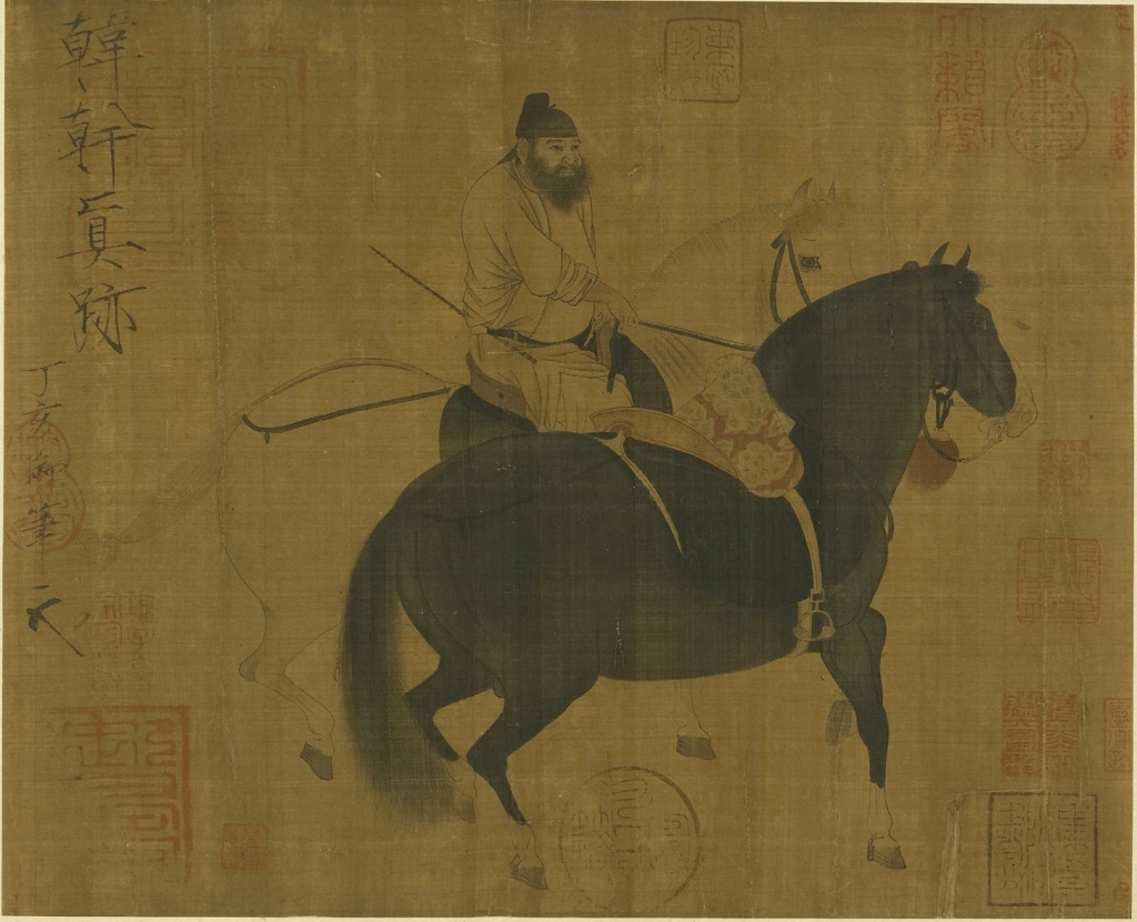 要談李公麟與紙本,就不得不從蘇軾(1037-1101)說起,〈跋漢傑畫山〉:「觀士人畫,如閱天下馬,取其意氣所到。乃若畫工,往往只取鞭策皮毛槽櫪芻秣,無一點俊發,看數尺許便卷。漢傑真士人畫也。」首次提出「士人畫」概念,並將之視為比專業畫工的作品更有價值。為使「士人畫」的創作理論更清晰化,他將唐代畫家吳道子(約680-759)與詩人王維(701-761)的畫作比較:「吳生雖絕妙,猶以畫工論。摩詰得之於象外,有如仙翮謝籠樊。」認為:「味摩詰之詩,詩中有畫。觀摩詰之畫,畫中有詩。」明確把詩意當成文人畫的目標。