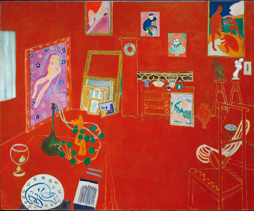 《紅色的畫室》最初懸掛在石像鬼俱樂部的吧檯,可想而知那裡是一片煙霧繚繞且歡騰愜意之境,最終的去處則是樸素神聖、簡明潔白的現代藝術博物館,空調與森嚴保全一應俱全,兩者呈現出鮮明的對比。像這樣的一段旅程有助於我們瞭解前衛藝術如何步入主流,得到認可成為值得收藏的作品。時至今日,馬諦斯重要的作品已鮮少現身藝術市場,這是因為它們都在博物館擁有了一席之地。然而,2007年11月,馬諦斯描繪鍾愛模特兒的畫作:《宮廷仕女,藍色的和諧》(L’Odalisque, harmonie bleue,1937 )在紐約佳士得以3,360萬美元落槌,輕鬆打破馬諦斯作品同一年在倫敦蘇富比拍出2,170萬美元的紀錄。