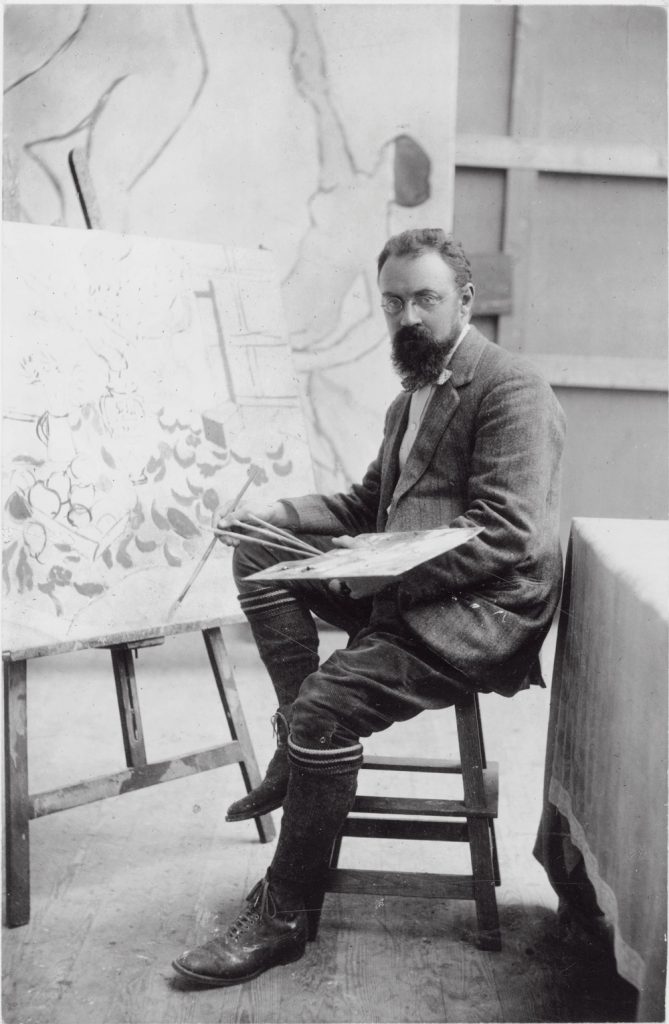 亨利.馬諦斯於1869年誕生於法國北部的勒卡托康布雷西(Le Cateau-Cambrésis)。在1891年前往巴黎研讀藝術之前,接受的是法學家的教育。他在巴黎獲得了象徵主義畫家居斯塔夫.莫羅(Gustave Moreau)的指導,作品亦深受莫羅的影響。1904年,馬諦斯在經銷商安伯斯.佛拉(Ambroise Vollard)的畫廊中舉辦了生涯第一次的個人展。次年因為在巴黎秋季沙龍展中備受爭議而被冠以野獸派之名。隨後,他遍訪義大利、德國、西班牙南部及北非等地。他與伊斯蘭藝術的邂逅尤其體現在他其後的作品之中。