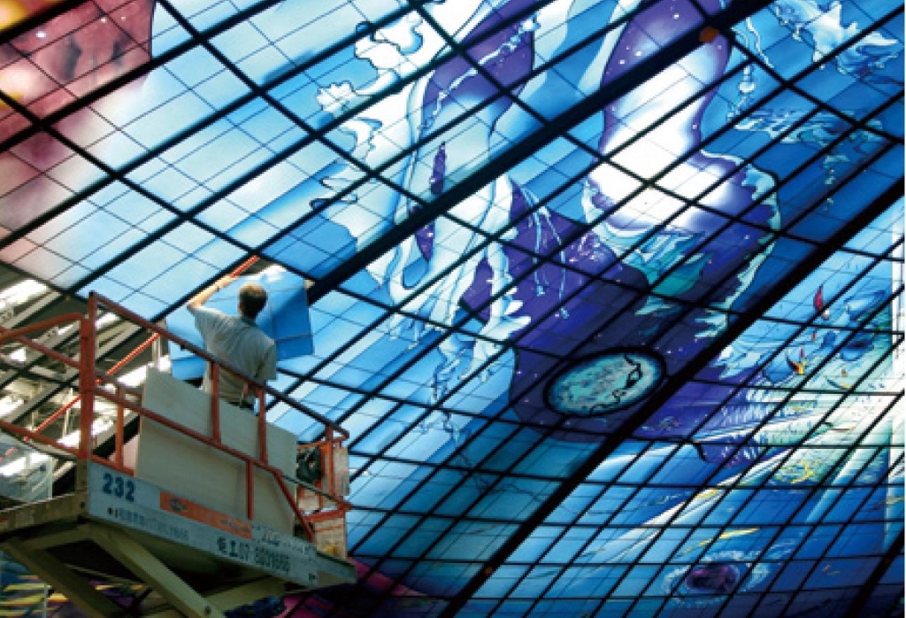在腦中駐足多年的願景是虛擬的現實,衝擊著我的是眼前所見真正的現實,我的心不願輕易放下曾有的想像。不過,在德國玻璃工坊一次只能看到穹頂的一小部分,如今看到我的創作適得其所地悠然漂浮,內心溢滿了喜悅。