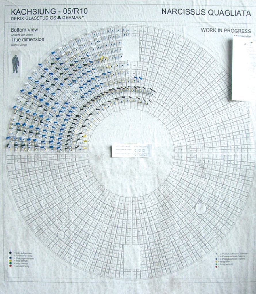 最後是公共藝術部幫我扳回局面解決了問題,他們希望這件作品是真真切切出自藝術家的手,而不是玻璃工坊在我不在場時按照設計稿執行出來。這些決定所需的經費也獲得解決,我們可以開工了。