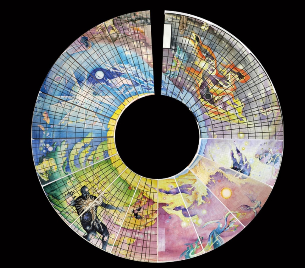 我的問題有些是大哉問,例如:「我是誰?」有些問題則比較具體:「祭司的圖像要怎麼融入構圖裡面?」慢慢地,這些問題在穹頂的符號地圖上凝聚成形,「光」在這裏,「土」在那裏。最後,我把作品均分成四個區塊,每一區塊分配一個主題,然後在大的主題裡再放入比較小的分項,這些分項或許比較不具普遍性,但同等重要。
