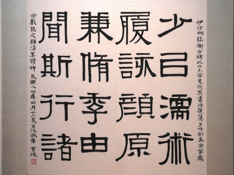 我進入老年,重新拿起毛筆,應該依什麼原則來創作?我希望找到自己喜歡的路子。我沒有興趣再去臨摹古代名家的作品,因為它們再好也已經看膩了。這時候我發現清末的碑學派作品是一條新路,與我小學時學習的筆墨技巧完全不同,為什麼?因為清末時期的大家大約對晉唐的傳統也感到厭煩了,就到晉前的碑刻中尋找典範,他們發現了用石刻出的文字,比起筆墨書寫來要剛強有力,因此就用硬筆濃墨來模擬刀斧的力道,來尋求新意。這就是最近兩百年中國書法名家們作品的大勢。他們為中國書法的發展邁出了第一步,可是下一步呢?