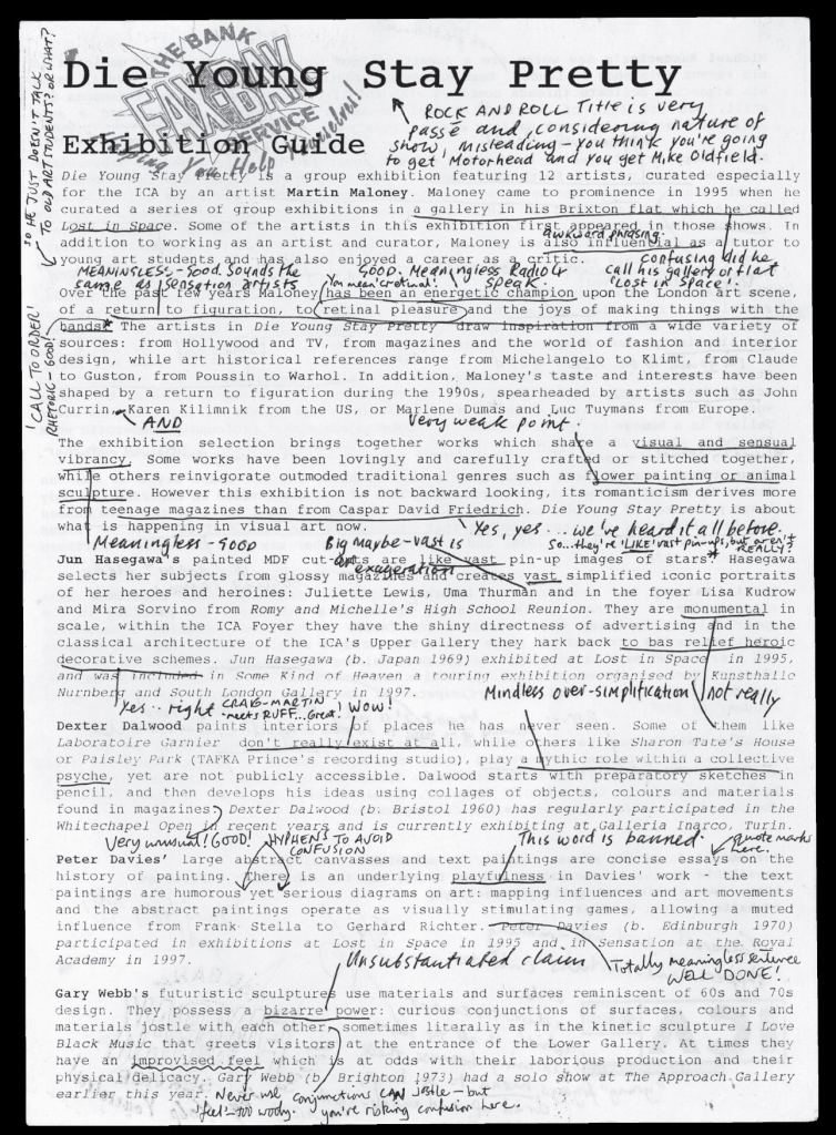 廿一世紀的藝術(檯面上與檯面下皆然)面臨前所未有的榮景,連帶著掀起了對藝術書寫的狂熱需求。美術館與藝術博覽會爭相宣布參觀人數破紀錄,規模多麼宏大,與此同時,新興的藝術學校、專門的藝術碩士學程、國際雙年展、商業畫廊、藝術服務、藝術家網站和龐大的私人收藏……這些時刻都在蓬勃發展。在持續膨脹的藝術宇宙之中,每一個角色都需要不同類型的專文,有時是針對藝術家、策展人、畫廊業主、美術館館長、部落客、編輯、學生、公關、收藏者,有時又是針對教育工作者、拍賣人員、顧問、投資人、實習生、藝評人、報社或者大學講師。如今虛擬讀者遍布全球,他們主要透過螢幕瀏覽圖文,即使是專家都需要解碼,方能理解的後現代主義、後媒材、後福特主義、後批評等年輕藝術家所創造出來的作品。