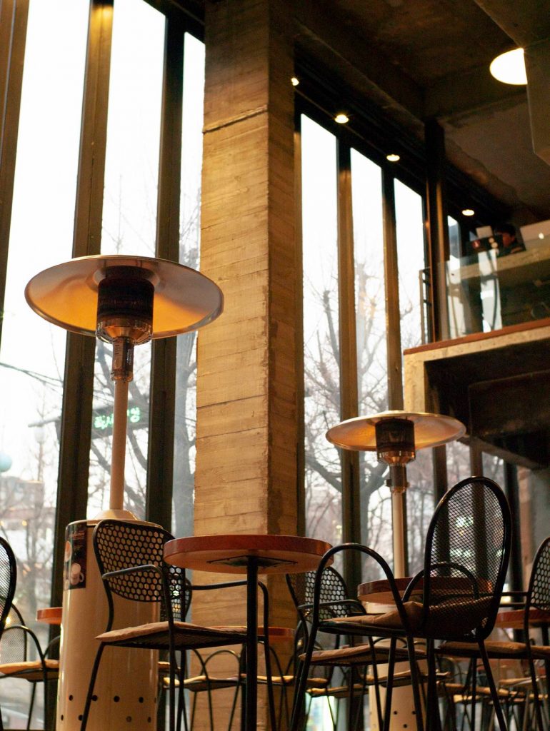 坐在窗邊的高腳座位,可以輕鬆地欣賞路上來往的行人,正因為是採取俯瞰的視角,所以更具權力。