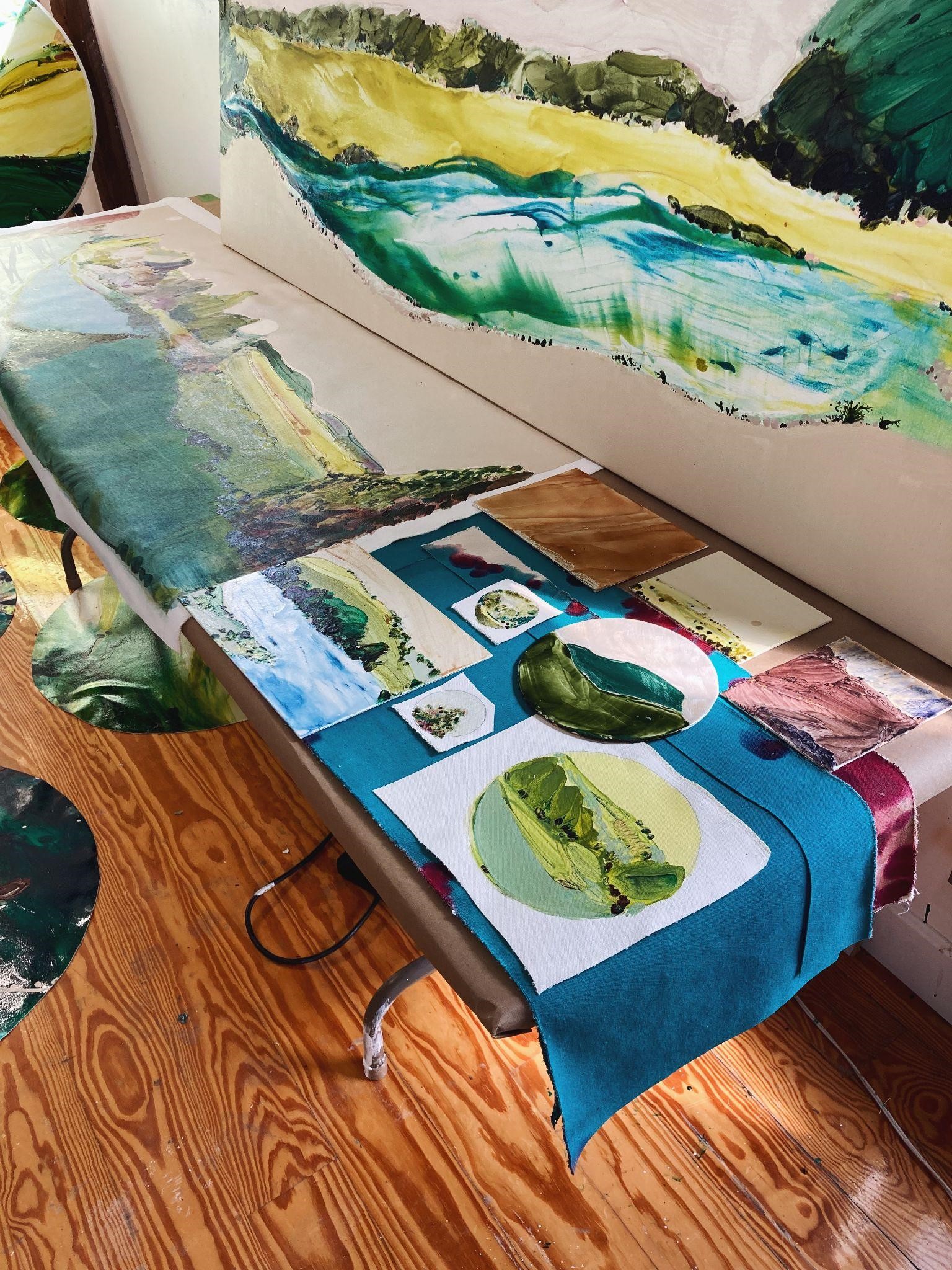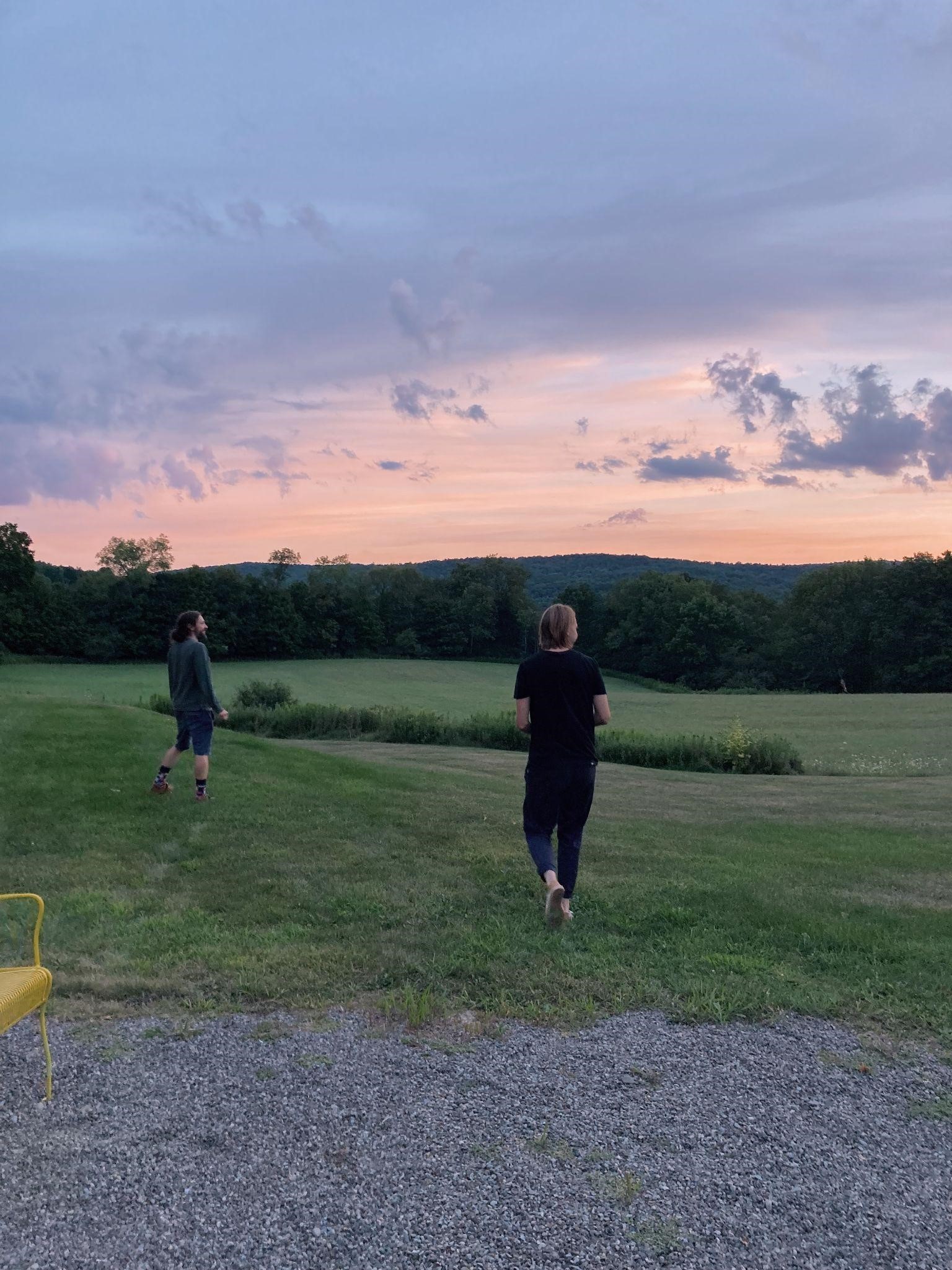 需要能約束自己,在對的時間做對的事;需要知道自己想要的是什麼,才能在短時間聚焦,發揮時間與空間的最大價值;需要知道怎麼照顧自己,因為在這幢房屋附近,能巧遇的動物比人更多;需要能跟他人相處,一個月的共同生活才能成就有意義的交流。我很得祝福的是,同期進駐的藝術家都親切幽默也很好相處。第一個起床的人會幫大家煮咖啡;冰箱有酒,但是不曾有人喝醉;垃圾滿了看到的人就去倒;如果剛好看到有人主動做事,會說謝謝。在十天的觀察期滿後,協議在Barn House可以拿下口罩的我們,開始有默契在重疊的時間晚餐,在戶外的桌邊聊天直到日落(東岸夏天的日落時間大約是晚上八點半),有時刻意經過彼此的工作室看看,更新作品進度、交換對材料的實驗心得。在這個有點像是宿舍生活節奏的練習場,卻全然不失對個人創作的尊重與支持。這樣的氣氛與節奏讓我想起學生時代的生活,在北藝的F307(十幾年前的F307是繪畫組的工作室),在芬美院的四樓(現在學校合併也遷址了),在不同的時空,不同顏色的眼珠重疊著對做作品的熱情,是那種已經經過了好多,心情還是會隨之起伏的鍾愛。