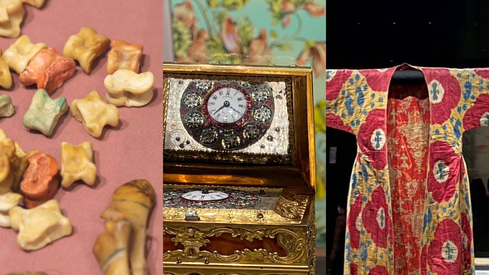 故宮所收藏的西洋珍寶還包括了各類琺瑯飾品及金幣,雖然這些收藏品僅反映了當時清宮的品味,但亦值得玩味。譬如18世紀〈西洋瑪瑙嵌鐘燭台〉結合了鐘錶及燭台,其型制於歐洲重要應用美術收藏中亦顯特殊。來自18世紀葡萄牙的〈瑪麗亞一世金幣〉及其他同時期歐洲金幣套件,則是忠實反映了大航海時代的東西交流史。