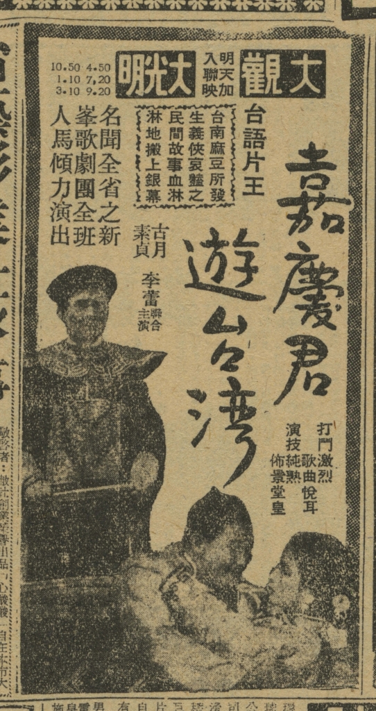 註3 1957年就有「嘉慶君遊台灣」相關電影的演出。