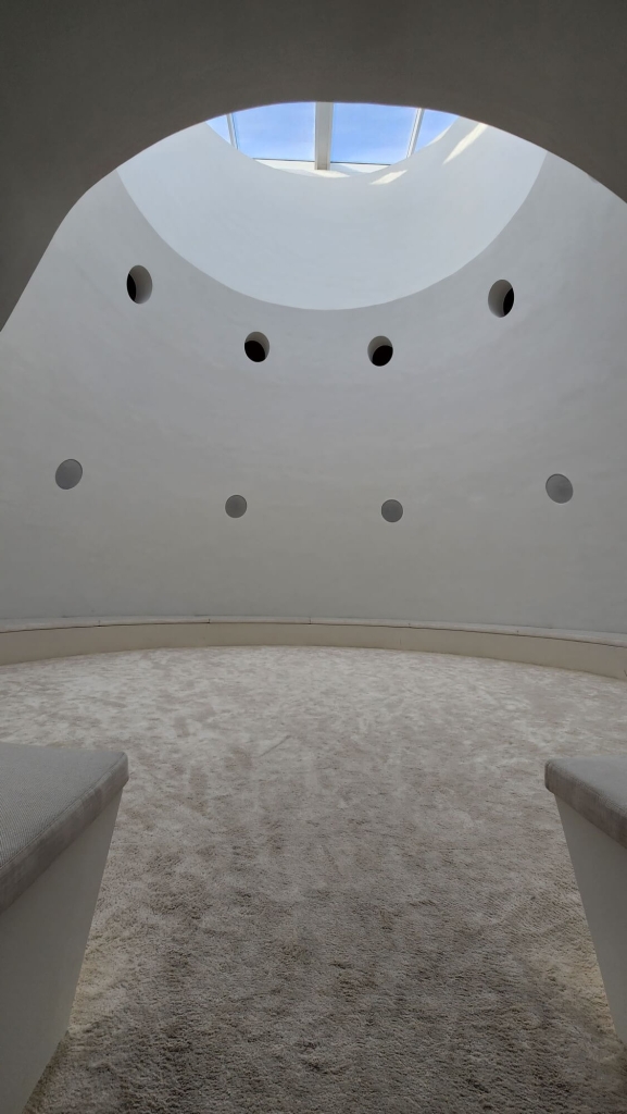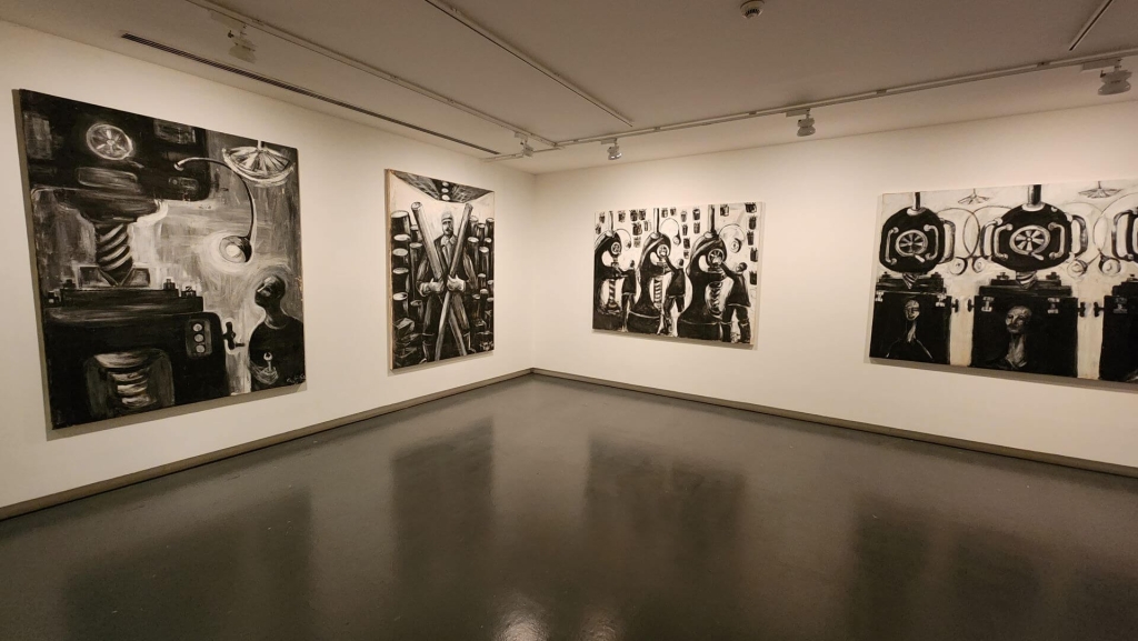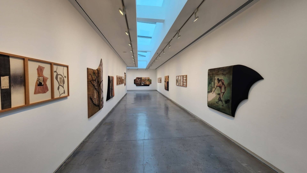 印度畫家安祖.多迪亞(Anju Dodiya)以接近小型個展的規模,展出其一系列從女性觀點所探出的超現實繪畫。在同一展廳走到底時,則擺放了加拿大藝術家哈吉拉.瓦希德(Hajra Waheed)的巨大裝置《哼之二》(Hum II,2023)。觀眾若要觀賞該裝置,則需脫鞋進入到一圓錐狀的巨大白色空間之中,從中聽取藝術家所安排的「哼鳴」和聲。